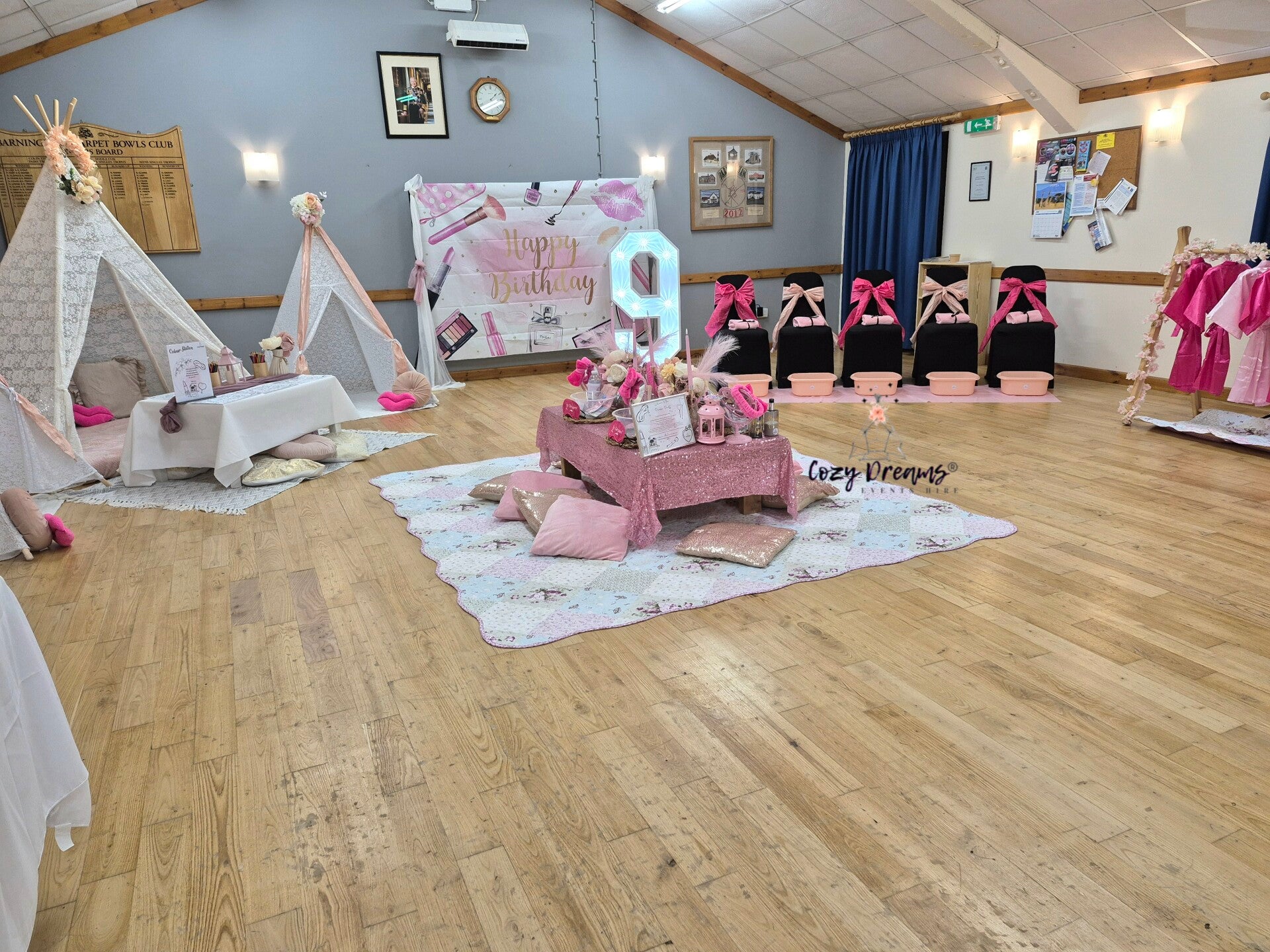 Our Pamper bar is set up by us on your required party date, we then pop back to pack it all away at the arranged times.